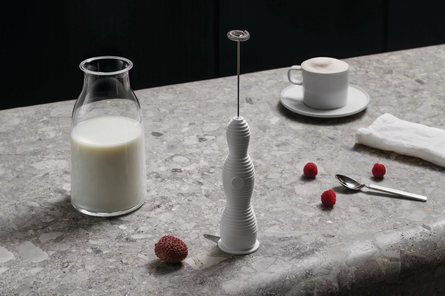 Od włoskiego terminu określającego mleczną piankę.